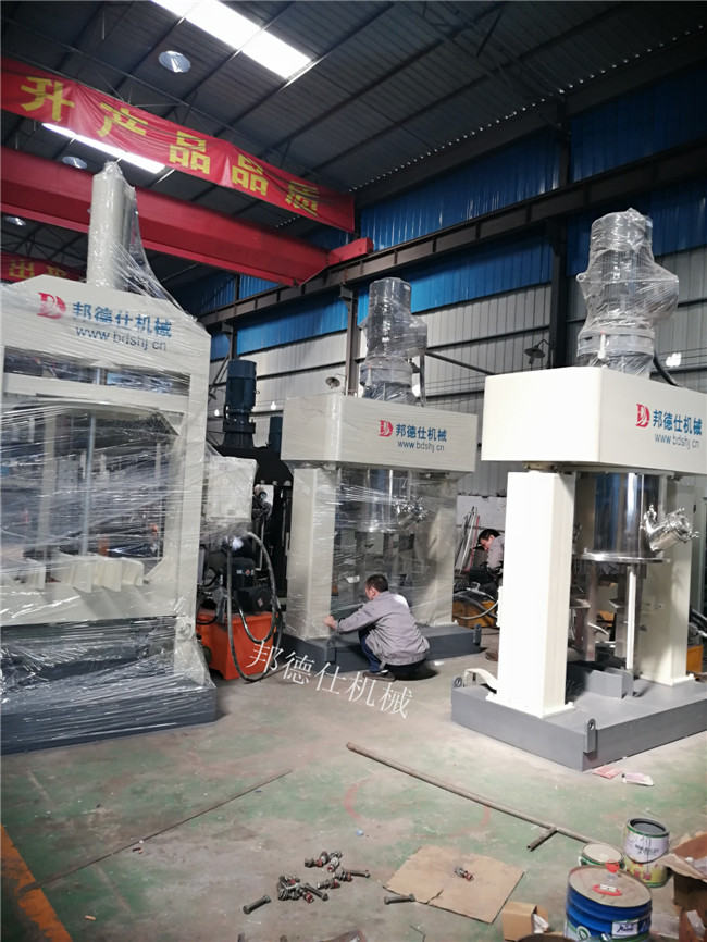 行星攪拌機是一種新型高效的勻質攪拌混合設備,采用獨特的槳葉設計、先進的攪拌模式和傳動原理等創新技術,其具有極大的輸出扭矩,特別適用中高粘度和觸變性比較高的物料(如膠粘劑、硅膠、鋰電池漿料等)進行非常徹底的混合。攪拌槳和分散軸公轉同時自轉,攪拌無死角,使物料上下和水平高速翻滾流動,分散盤又對物料不斷剪切、打散,物料極短時間內就可達到混合均勻的效果。